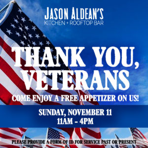 Thank You, Veterans By Kyle McNeir | November 7, 2018 Come enjoy a free appetizer on us! Posted in Restaurant News